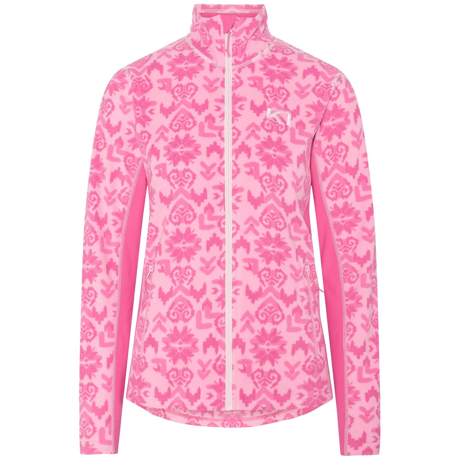 Kari Traa Olga Fleece er en varm, afslappet vintermellemlagsjakke til kvinder med et markant, heldækkende Inca-printdesign, der er perfekt til udendørsaktiviteter med stil.