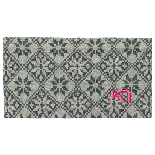 Pandebåndet har et flot, solidt snekrystalmønster i jacquard-strik og er tilgængeligt i en række farverige nuancer, der passer til Kari Traa Rose-basislag. Pandebåndet har også et broderet logo for en ekstra detalje.